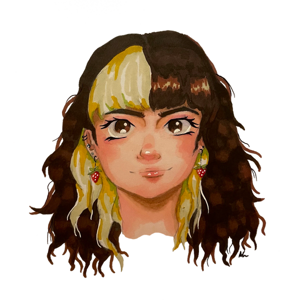 Freehand drawing on paper, colored with alcohol ink markers